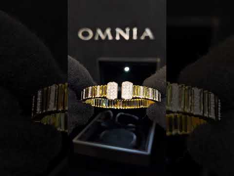 Omnia Talin Golden Bangle in 925 Silver with High Quality Simulated Diamonds